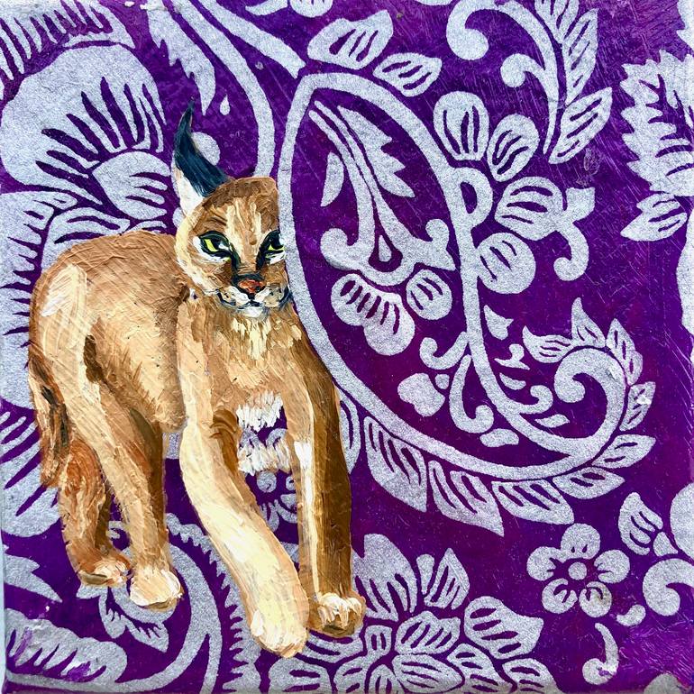 This tiny 4x4 inch canvas is inspired by a visit to The Living Desert in Palm Desert, CA. It is gallery wrapped with patterned paper. The caracal is hand painted with oil paint. The deep canvas can hang from a single nail or sit freely on a shelf. "Elusive" is the perfect gift or makes quite an impa...