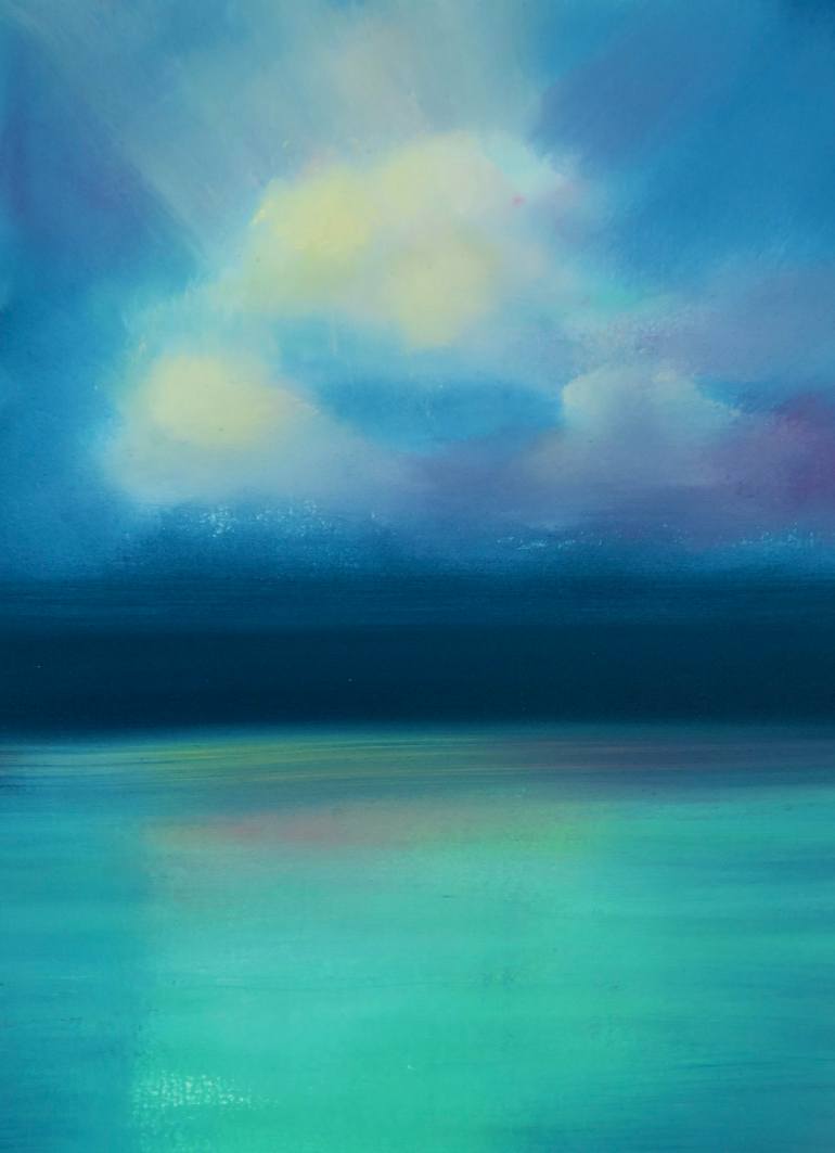 These are studies on paper of the sea. They are signed lower right. There is a small boarder around the edge where the paper was taped to a board. My aim with these abstracted landscapes is to create paintings that allow viewers to escape into the natural world. Each piece is based on real places, ...