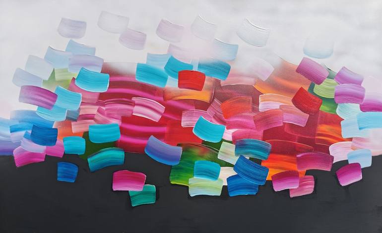 Stéphanie Rivet, born in 1972 in Montreal, is a versatile artist with an diverse background. After studying mathematics at the university level, she shifted her focus to visual arts and earned a Bachelor's degree in Arts from the University of Quebec in Montreal in 1998. During her studies, she explored various mediums, but painting became her main form of expression. Since 1998, she has consistently exhibited her work in galleries across Canada, the United States, and Europe. Her work is part of numerous private and corporate collections worldwide, reflecting her creativity and passion for art. Stéphanie Rivet's artist statement is rooted in a deeply intuitive and creative artistic process, where spontaneity and experimentation guide each step. Her abstract paintings, created with acrylic on canvas, express a free universe through gesture and color, where imagination unfolds without constraint. The artist explores the expression of joy and reconnecting with oneself through abstract painting. Her practice is a sensory and emotional journey, where color, spontaneity, and free expression combine to reveal the beauty of joy and the power of self-reconnection. Her palette consists of bold, contrasting colors that invite dreaming and discovery. Her lively and energetic gestures, combined with various techniques, allow her to express movement and depth creating a dynamic balance. Through her layers of paint, she aims to evoke vitality, diversity, and the intrinsic beauty of the natural world, while leaving room for the viewer's subjective interpretation.