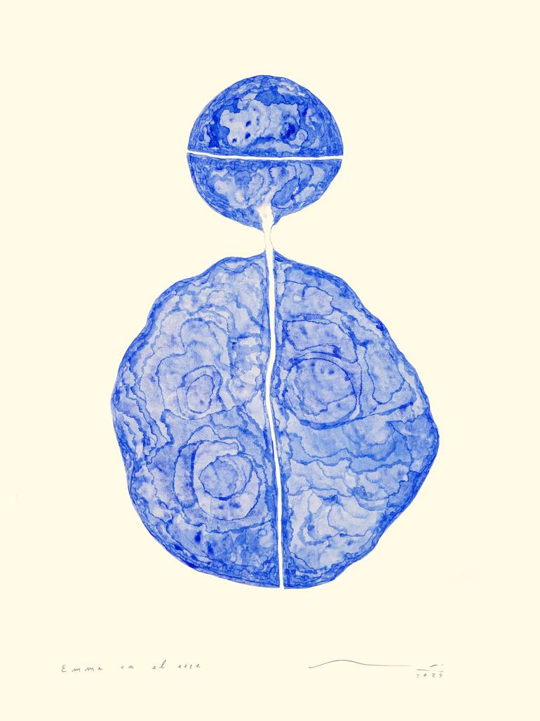 My inspiration was the Mediterranean and the air. I tend to work with simple tools although watercolor is extremely difficult as you ca not fail. Watercolor is magic. The pigemt I used in Emma en el aire is hand made and comes from Italy. The paper is hand made and comes from France.