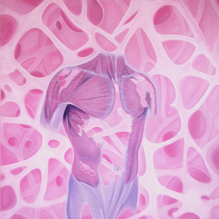 This work belongs to a series of fragmented and interconnected torsos lying in a human matter backgroung essential to life.