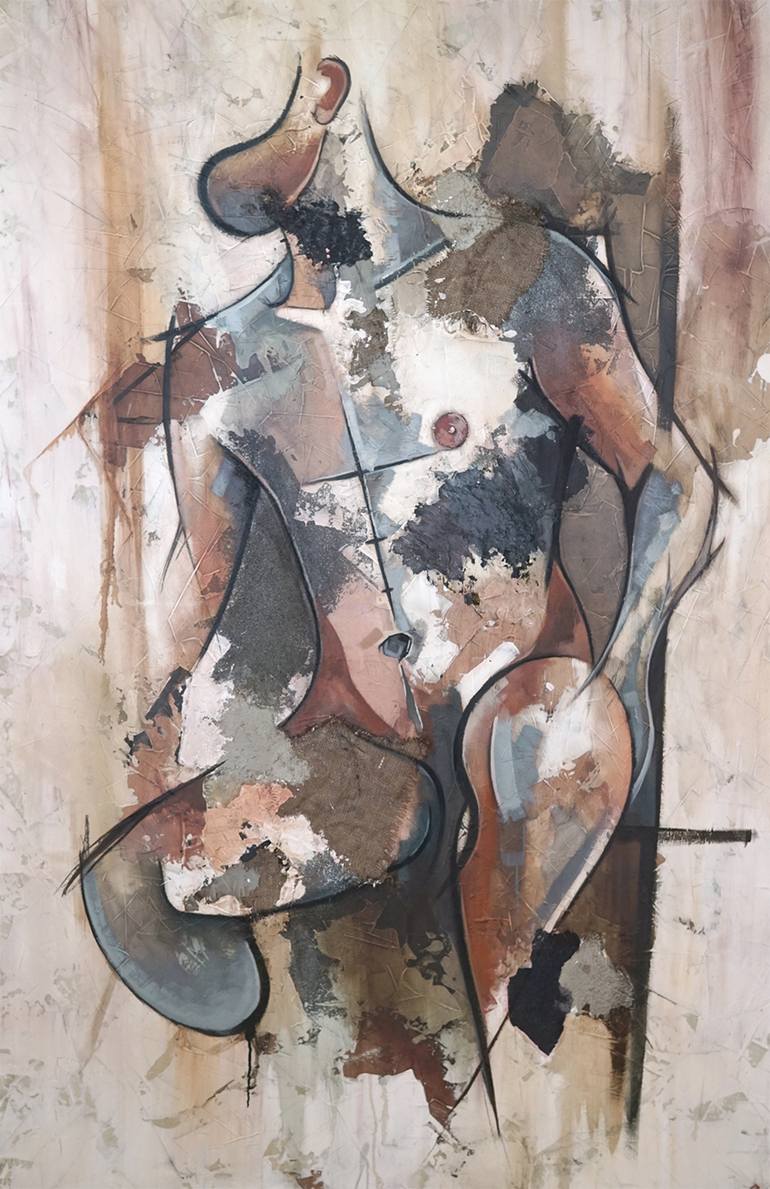 Jiménez’s work explores the intimate and personal ways of seeing the human form. He confronts parallel themes of isolation and attachment as a duality of the human condition. These works depict the effusive desire to capture the soul and the innocence of the human form through art. Full of feelings and ideas, textures and forms, these works reveal the essence of the human condition. Francisco’s aim is to immerse the viewer in his world with his characteristically strong style. This is a world of intimate places, imperfections and sensibility which follows the lines of the human body and the aura that surrounds people. Francisco was born in 1987 in Jerez de la Frontera, Spain. He soon moved with his family to Madrid, where he became absorbed by the great world of painting. It was in this big city where he became absorbed by the great world of painting and in particular the beauty of the human body in art; the nude. Francisco was influenced by the rich artistic scene in Madrid and began to find his artistic style by experimenting with different mediums and materials. A significant turning point in the development of his work was attending an exhibition by artist Antoni Tàpies. Seeing the work of Tàpies allowed Francisco the freedom to experiment with applying different textures and materials to canvas.