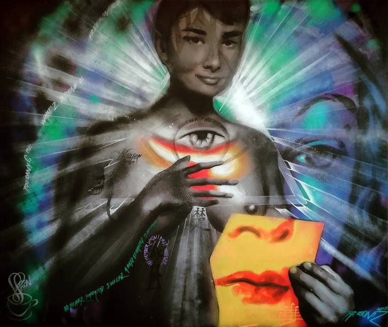 The painting is inspired by the Venus of Botticelli(Simonetta Vespucci), Audrey Hepburn and chinese girls of Chinatown in Milano. The Renaissance top-model opens her eyes and now ... here in front of us, we have the imperial beauty...she reads a mysterious letter.