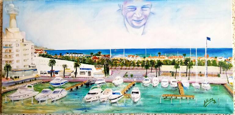 The largest Marina in Europe is located in Catalonia, Spain, in the Empuriabrava town bathed by the Mediterranean, precisely the painting represents the jurist Philippe Clemente who attentively looks at his city.