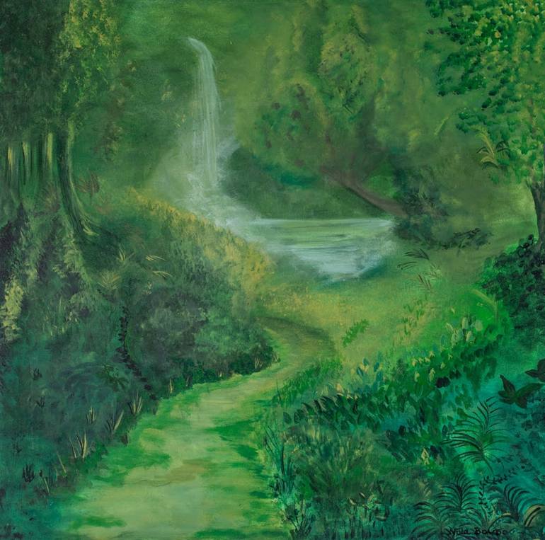 Artork that represents a magical enchanted forest ... spring of wisdom, tranquility and fresh leaves that tries to bring that magic directly to the observer and make him the protagonist of the place. Unique piece.