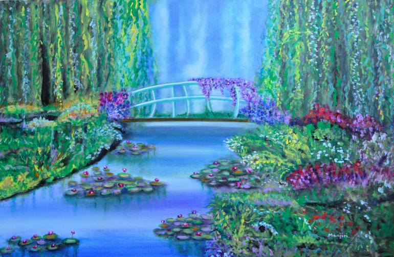 A colorful painting of garden at Giverny. This is my version of landscape inspired by Monet's Garden. The vibrant flowers, shrubs and grass, painted in full glory, create a very cheerful ambiance. This painting will look stunning in any décor. Sides of the canvas are painted so it can be displayed w...