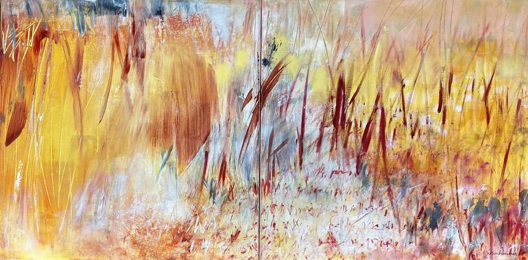 The sun is preparing for a new saison : Autumn. The light is still intense , but the burns are rare . Nature offers us , at this time, a real show ! Richness of colors ! Golden yellows, dark and vivid reds. Small grasses write the history of movement of Time , of Impermanence ! Diptych