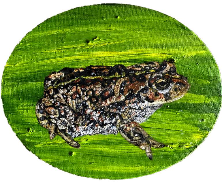 The endangered toads and frogs series are painted on oval canvases.