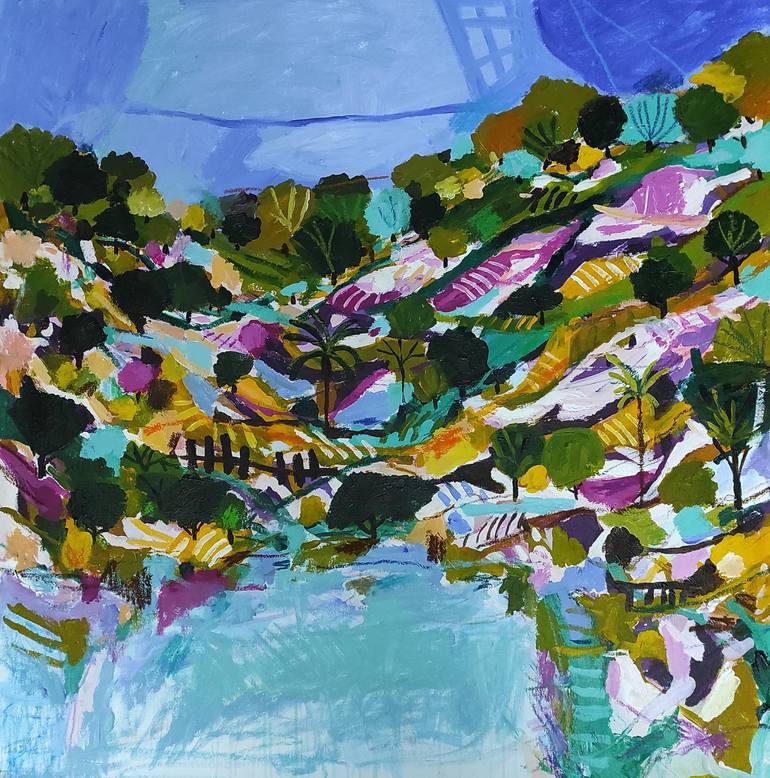 Original landscape painting on canvas. Thick textured structure with colorful pastel tones. The painting will ships rolled in a tube. You can let the painting stretch by local framer on wooden stretcher frame. You can find a framer in every picture shop or frame shop. Materials: acrylic colors, ca...