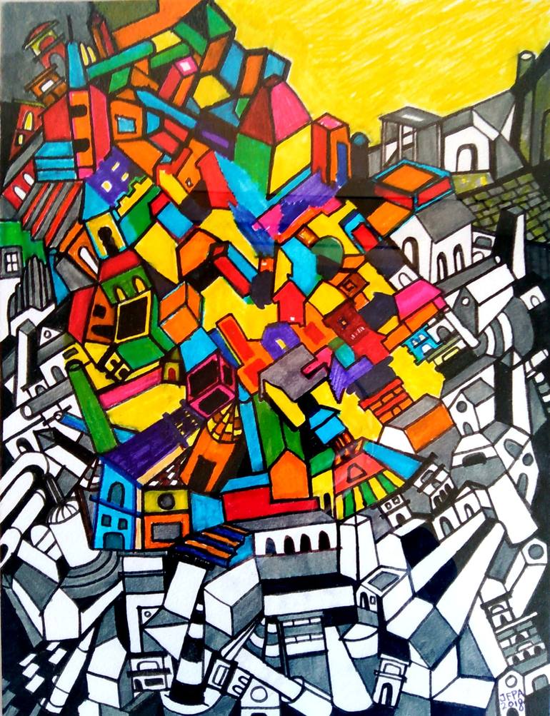 José Félix del Puerto Almazán (Los Navalmorales, Toledo, 1951) is a Spanish painter who lives and works in Madrid, Spain. Founder and driving force of the artistic movement called Entropism, which extends beyond painting to other artistic fields such as writing, dance or cinema and tries to express the growing and irreversible disorder threatening identity and individual expression. Author of a Science Fiction novel: "The Tower of Esteban Hambran", (soon to be published), it is a decades-long piece of work that extended to more than fifty thick notebooks chok-full of evoking images and wanderings about existence: Entropic Storms devouring whole Galaxies like Saturn his offspring, and artificial entities created to save the humanity.