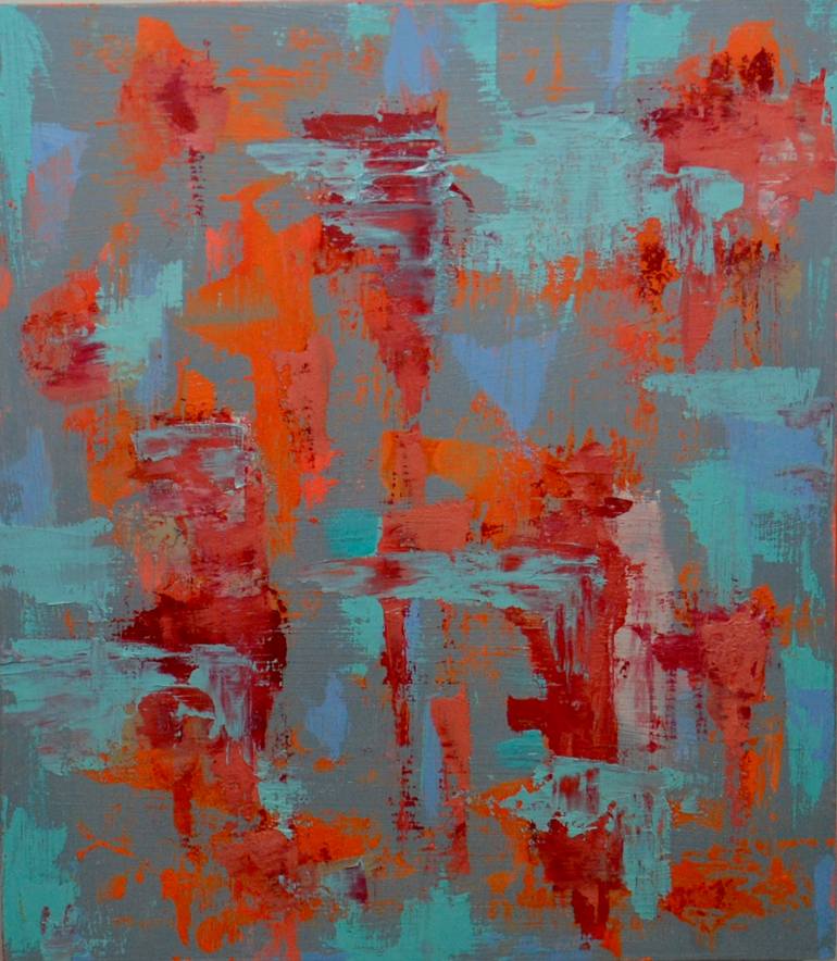 Entropy was inspired by the variable configurations giving colour a mesmerising endless quality and a measure of disorder. Perhaps a window on an uncertain time with endless possibilities for change. The painting has been rendered in oil on a wooden panel and mounted on a wooden cradle. (No framing...
