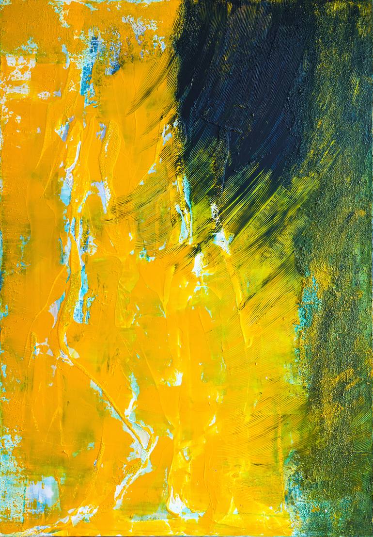 My work is about the quiet space in your head where snippets of life and feelings and memories live. An inspired sunset or mountain view brought to life in the form of abstract color blending. Not an actual image of the memory but more like the feeling of the moment... Heavily textured, this paintin...