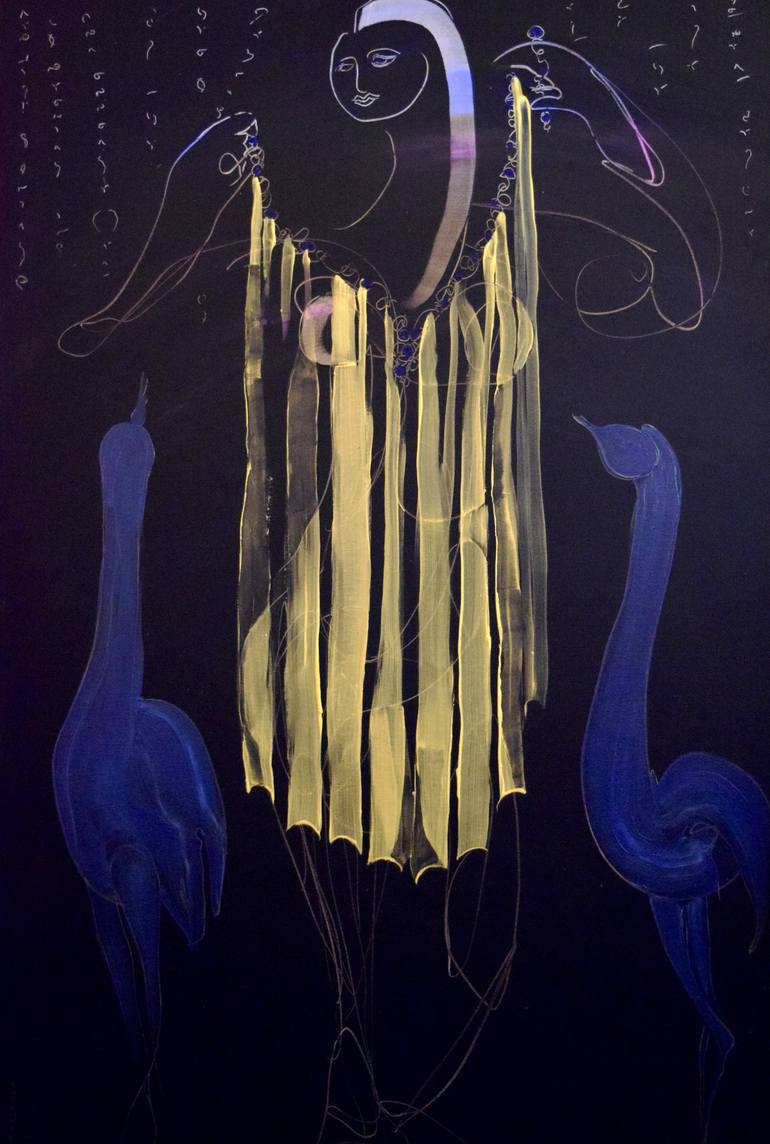 I see cranes as a very evocative expression of a wide variety of emotions in a most elegant (in the design sense) form. Line and vibrant color are aspects I always am delighted to play with. The crane paintings are conceptually part of the oeuvre, Remnants and Residents of a Lost Sanctuary of Aphr...