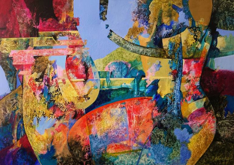 Acrylic on Canvas. Original abstract paiting on canvas. Signed. Ready to hang. Paiting with original abstract form, with figural motif.