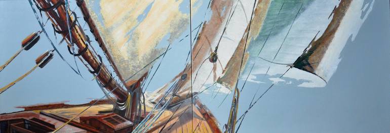 WORK IN CRISTMAS OFFER !!! From 3200 $ => 2570 $ The work is a diptych. Two canvases with sizes 70x100x4cm Overall 70x200x4 cm Nothing and no one can stop me ... I am flying in another dimension where earth and sky are all in one, without limits