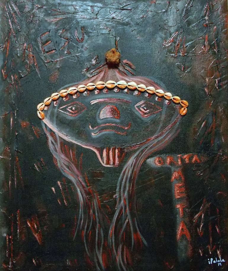 Havana, Cuba, 1982. Ifalola is a plastic artist, writer and priest of Ifá; the ancient Yoruba tradition named by UNESCO as a Masterpiece of the Oral and Intangible Heritage of Humanity. The Yoruba religion comprises the traditional religious and spiritual concepts and practices of the Yoruba people. Its homeland is in Southwestern Nigeria and the adjoining parts of Benin and Togo, a region that has come to be known as Yoruba Land. Yoruba religion is formed of diverse traditions and has influenced or given birth to a host of thriving ways of life such as Lucumí, Umbanda and Candomble. Ifalola’s work is a combination of oil painting, textures, and installations of key and very authentic elements that highlight the symbolisms on his work.