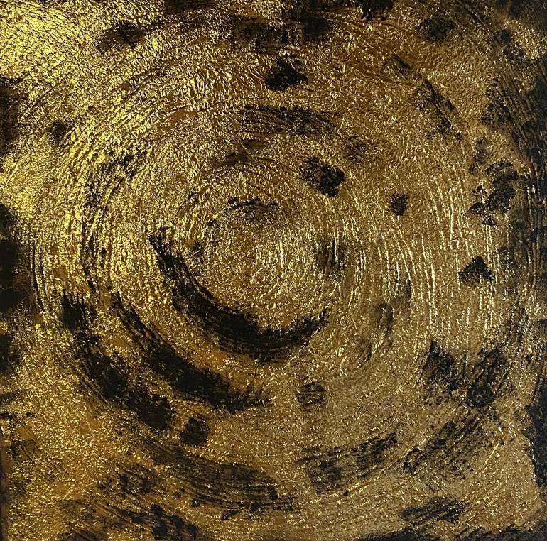 "Eternal Pulse" is a golden canvas centered around an infinite circle—symbolizing timeless flow, unity, and inner continuity. Three black semicircles hover like silent phases of a cycle, each one offering a quiet interruption in the seamless whole. This interplay between gold and black evokes both c...