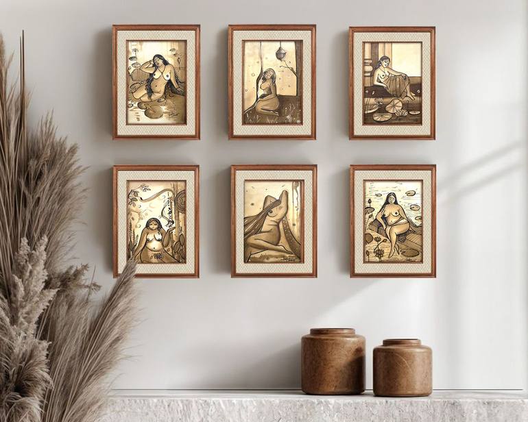 ✨ Ethereal Women in Coffee Tones ✨ A collection of six unique coffee paintings, blending coffee ink and white gel on paper, bringing out the raw emotions and fluidity of femininity. These abstract conceptual illustrations portray the essence of womanhood, storytelling through earthy textures and del...