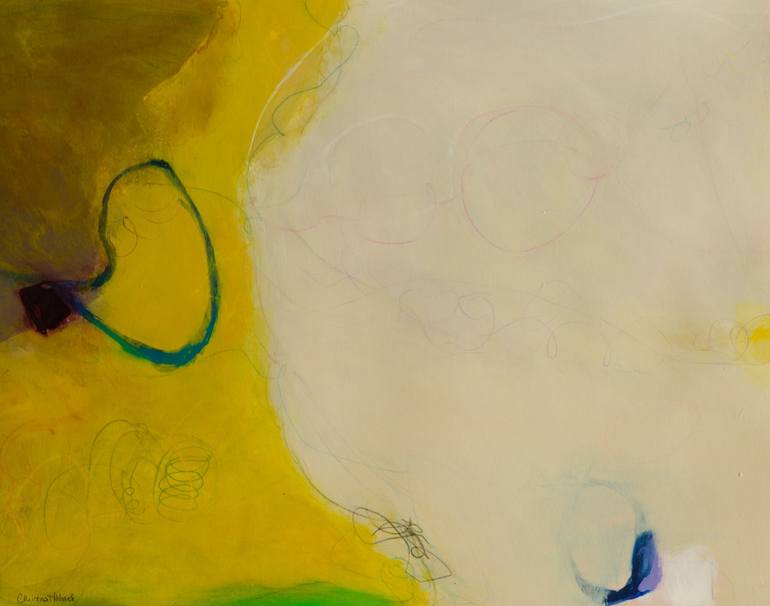 I approach most of my paintings intuitively, meaning, I don’t have an end goal in mind. I layer my canvas or paper with acrylic paints, collage (papers, acrylic skins), inks, charcoal, colored pencils, and crayon (water-soluble, oil pastel, wax). I do this until I see something I like (a color or li...