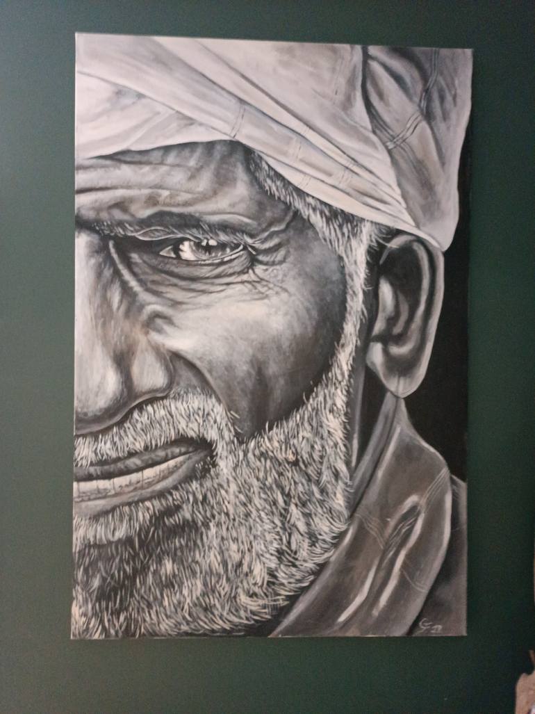 This acrylic painting I wanted to show the lives of these men who live in desert but at the same time this look gives off hope