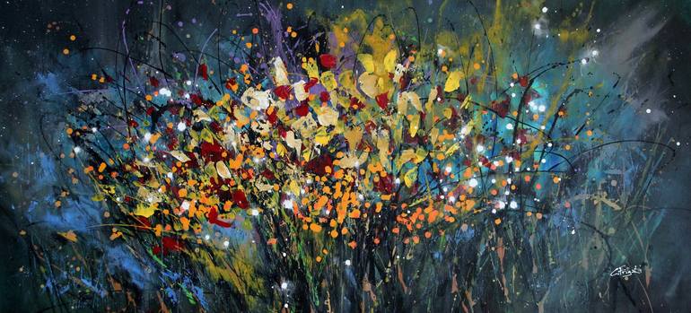 Cecilia’s artworks are lively and buoyant with explosions of colours and freedom which mirror the intensity of her own view of the natural sceneries. She is a real creator and inventor always seeking new forms of art and techniques to express her inner self. Her paintings generate from memories and visions that flow onto her canvas instantly leaving enough freedom for the viewer for their own interpretation. She specialises in large contemporary atmospheric landscapes and super-sized floral compositions using her unique abstract techniques as well as more organic and intimate abstractions. Her large scale paintings combined with her unique free-flowing abstract techniques have brought her great recognition and her works have been selling all over the globe to private collectors and for interior design projects. Born and raised in Italy but upon receiving her degree in Painting from the Bologna’s illustrious Accademia Di Belle Arti Cecilia moved to London,UK and over the years she established herself as a full-time independent artist. Currently lives and works in rural Hungary where she solely focuses on her art practice. She is a very approachable character and enjoys engaging and working closely with her clients let them be private home owners or interior design specialists.