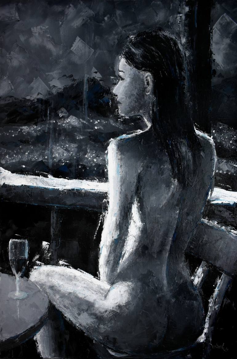 Original artistic nude, acrylic on a stretched canvas. Painted by an artistic palette knife. The work is also painted on the sides and has a handle on the back, so there is no need to frame it. The image is secured by a certificate of authenticity (included), contains the signature in the front, low...