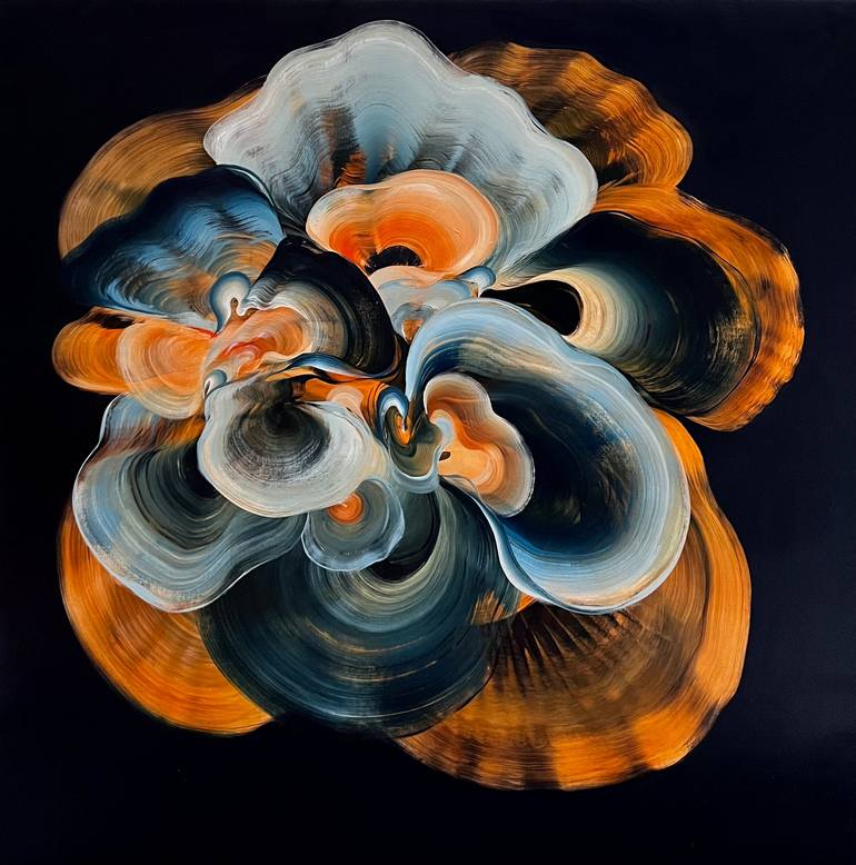 Ever New Joy (2024) - Oil on Linen 40x40"/102x102cm Ready to hang. Framed in a hand-painted black wooden tray frame. Signed on the reverse of the canvas. This contemporary abstract painting is from British artist Genevieve Leavold’s Unstable Structures series created in 2024. These paintings ...