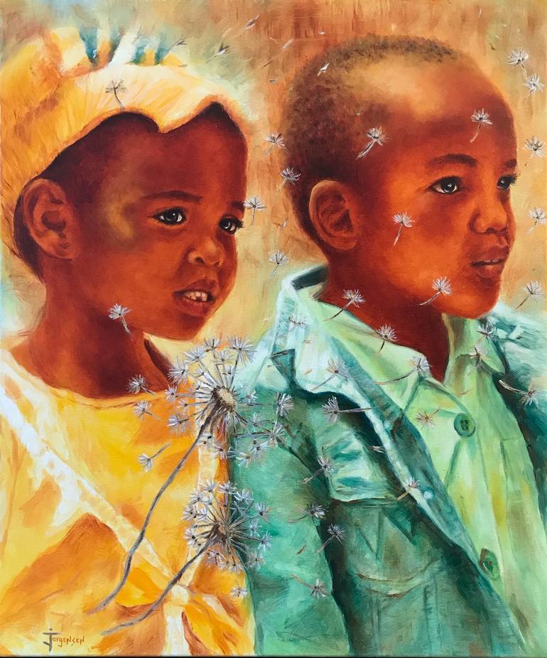 During our trip to Kenya we attended a celebration in a small village. The expressions on the children’s faces were priceless and I felt a need to capture it on canvas