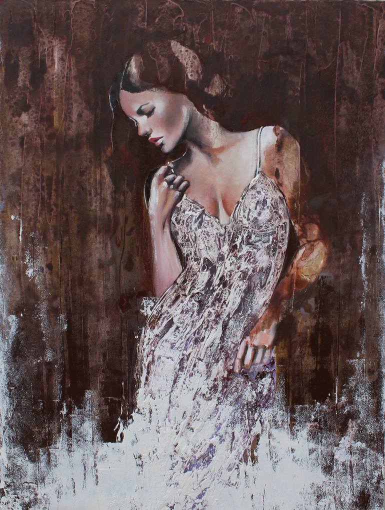 Professional artist, graduated with Maxima cum Laude in 1998 at the Academy of Fine Arts in Perugia, Italy. Rapresenting Galleries. Imago Gallery Perugia - Italy -Galeria Gaudì – Madrid, Spain Immagini Italart—Cremona, Italy Paintings are in private collections in Los Angeles,Paris,New York, Moscow, Washington,Canada, Florida, California London,Nice,St. Louis, Portugal, Cyprus, Italy and so on.. She perfectioned her style in England where she lived for 5 years. She hence began to exhibit in Italy and abroad in prestigious private galleries and public places, immediately receiving important awards and the consensus of specialized critics. In March 2014 she received an award from the Director of the Selenograd Gallery in Russia and began to exhibit and sell her works worldwide. In her paintings, the woman is the central subject: protagonist in scenes of love, awaiting, passion, pain, abandonment, desire, perversion. Donatella defines her works born out of chaos, confusion and characterized by strong lines, quick, unfinished, scratchy. The artist seeks to evoke emotions, narrate situations and tell life stories using different means of communication and extremely varied between them such as oil, ink, pigments, glass, cement and coffee. “Her women talk about love and men … first of all of her father who enrolled her at the Academy and now, although he is no longer, he fully participates in her creations being her memories fixed on canvas by the use of cement. Her father… a mason… a man… the first whom understood, her first true supporter. To him, the works letters of coffee are dedicated where the artist tells of herself and intimately opens to him. Her first exhibition dates back to 1997 and since then until today numerous personal and collective exhibitions have followed in galleries and museums in Italy and abroad