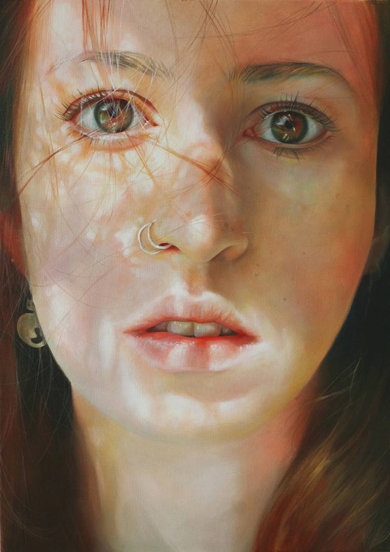 As long as I can remember, I've been fascinated by the human face and its expressions, but maybe even more important: I’m fascinated by what’s behind this face. We're used to judge a book by it's cover, a person by its appearance. We are locked up inside ourselves. And in a world this big, you can feel anonymous and small when looking at the world through nothing more than a small pair of eyes. At least, that’s how I feel. To get wonderings like this onto the canvas, I’m searching for women I can identify with, to decrease the feeling of anonymity and alienation. I sometimes find them on the streets, some of them are close friends already. The important thing for me is that I feel that there is a connection between us, not needing to be explained easily. In my work, I search for a way to bring their inner world to the surface. By looking very closely at them, by studying their eyes, their expression, the small details, I wonder how much we’re alike, and yet so different. I ask myself how others look at people on the streets, if they ever have this feeling of recognizing someone, with the knowledge they’ve never seen this person before. In a world this big, would it be strange to think that there are in fact more people like you or me, people who are actually quite the same?