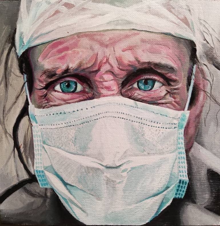 It belongs to my series of works "Tribute", where I pay tribute to our elders, specifically the elderly who have died during the covid. In this work he represented the portrait of a doctor during the worst moments of this pandemic, exhausted from fighting, as if it were a soldier in a war. Pertenec...
