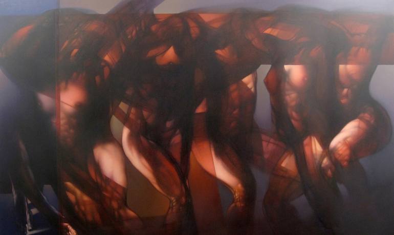 Warm tones depicting body fragments in an expressive horizontal movement. I am inspired by the work of Goya, Rubens, Caravaggio and Bacon. I would like to connect with the feelings of the viewers and leave questions in their mind.