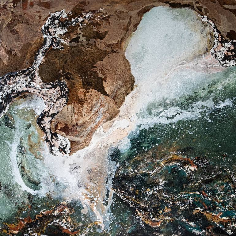 This artwork invites you to explore the delicate interplay between land and sea, where the sandy tidal flats reveal their serene expanse. The artwork captures deep blues that mirror the movement and rhythm of the water, creating a dynamic contrast against the softness of the exposed sands. Sunlight ...