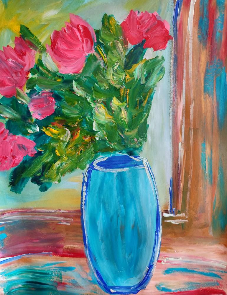 This expressive and vibrant floral painting of roses, created by the contemporary French artist Natalya Mougenot, is a dynamic representation of nature’s energy. Born in Kazakhstan in 1981 and living in France for the past 20 years, Mougenot is renowned for her bold brushstrokes and masterful use of...