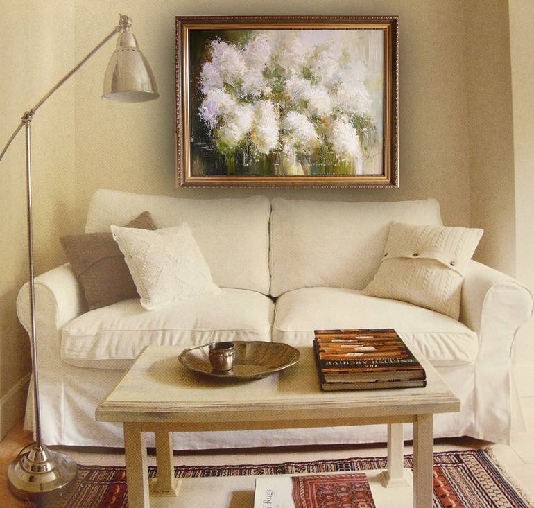 painting oil on canvas impressionism white lilac 47 / 62 cm The artwork is framed and ready to hang Fine art, interior painting, interior style, contemporary impressionism