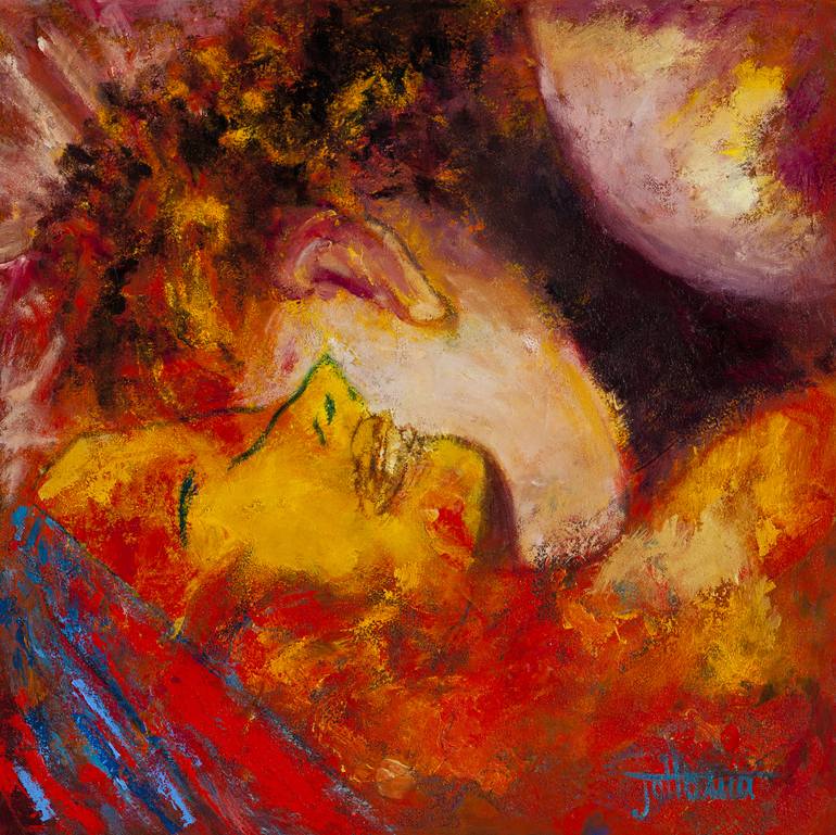"Extasis" depicts the climax of being in love. I did this painting being totally in love with the big love of my life. I used warm colors to emphasize the passion...