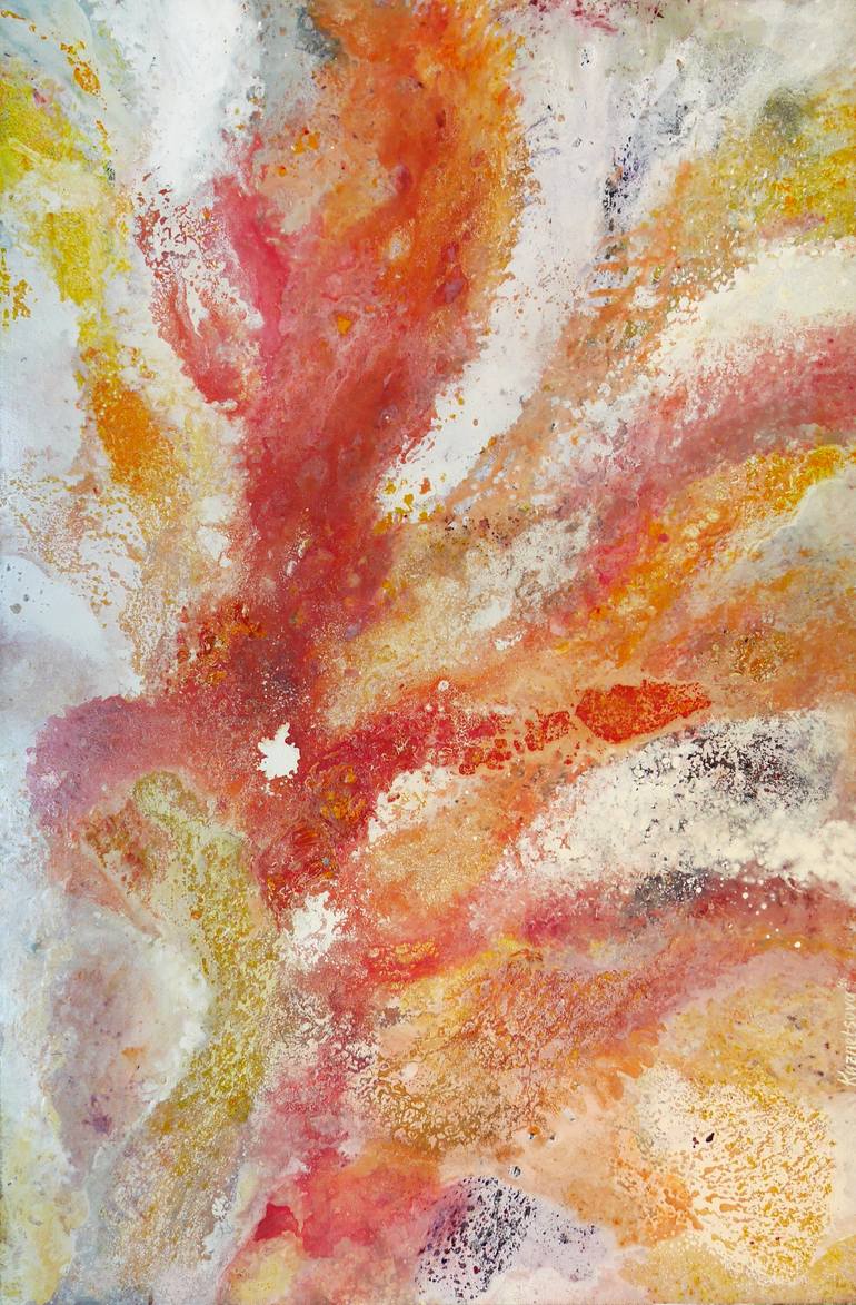 I remember it was a sunny day when I began to work on this painting. It was the beginning of spring and I wanted to share my hope for more sun, joy, and the future warm summer with everyone looking at it.