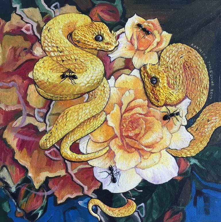 This painting is part of the series "The Wild Mindset' from 2018. A special technique is a high layer of oil color sculpting on canvas.
