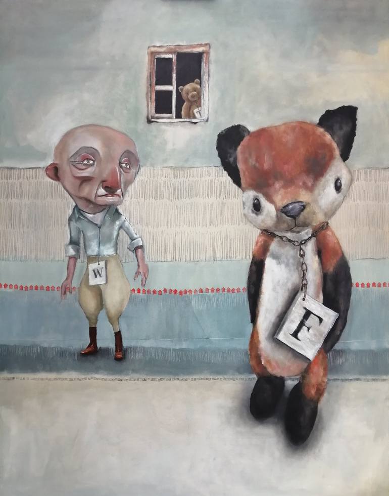 A large scale oil painting on stretched canvas inspired by the "human condition ", in particular the process of ageing and its effects on our mental state