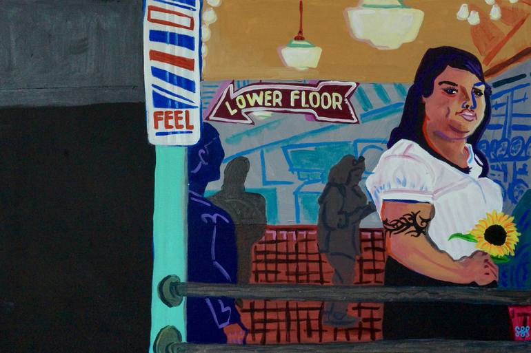 I was poking around Pike's Market in July of 2019, looking for something other than the guys throwing the fish. (I did get that, too.) I saw the LOWER FLOOR sign and yes I'm a huge fan of signage and picked up the camera and focused and then saw this young woman holding a sunflower. I'm not sure ...