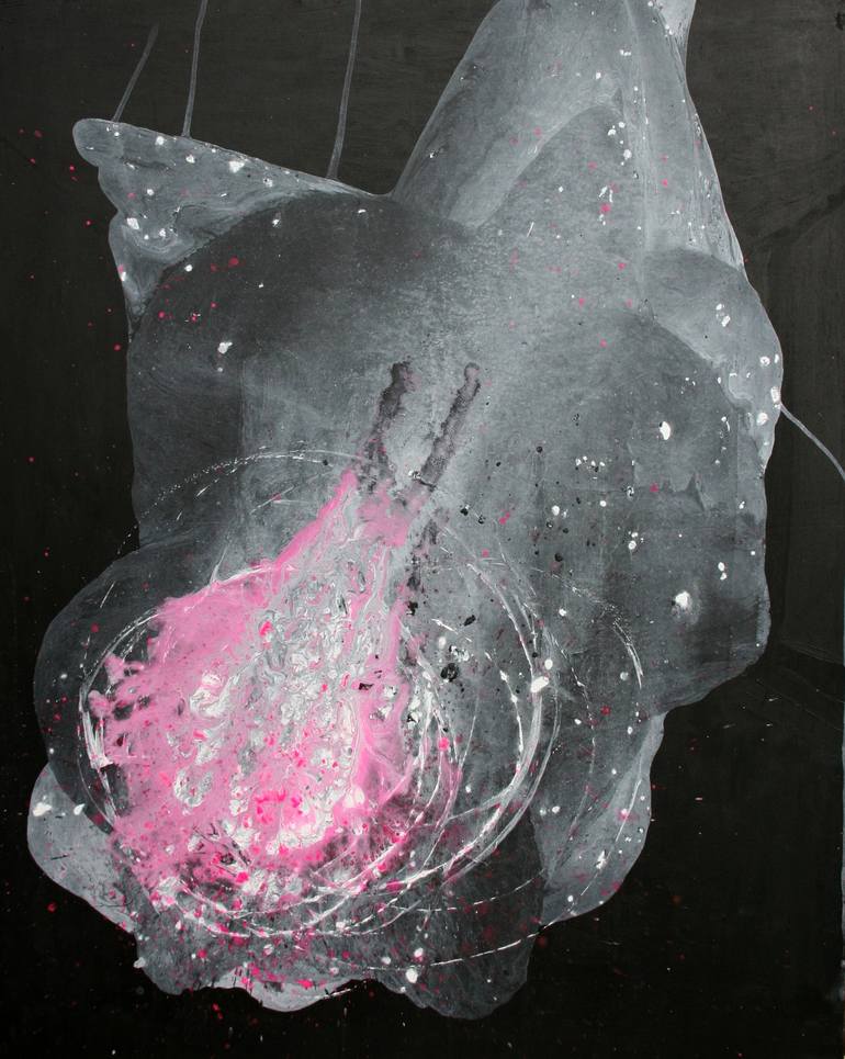 ACRYLIC on canvas on black background. Petal like a wing.