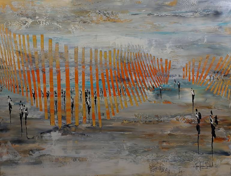 detail of the artwork on YOUTUBE : https://www.youtube.com/watch?v=yBmXUIfkRpY Abstract Landscape, just painted to get the possibility to think over FREEDOM, the silhouettes give to the artwork a human and figurative touch Acrylic on canvas, painted with palette knives, edges painted in black, hig...