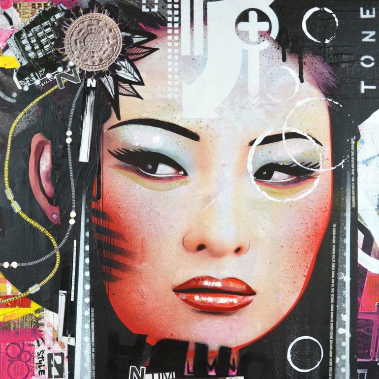 Tone is native of France, working and living in Montreal, Canada. If you are a junkie of contemporary urban art and a graffiti enthusiast, his artwork will leave you amazed. Tone is a painting devotee. It was and still is the medium used to express himself and to channel his own energy. Inspired by the graffiti's movement, living and loving the electric vibes of urban cities, Tone studied in architecture and in graphics, which his knowledge is reflected into his very own personal projects. In 2007, he founded his company T-Pakap Production and from then was invited to feature his art in multiple art gallery and events in France, in the United States, in the UK, and finally in Canada. Having the urban essence within himself, Tone takes inspiration into the very liveness of the city. His artwork is composed of four categories: the women's faces, the calligraphy, urban landscapes and urban vibes and thoughts. Tone does not only work on painting canvas. Since 2013 and under the same thematic, he launched a new range of indoor furniture under the MobiTone collection, all made from recycled, retouched or appropriated by Tone himself. He uses mostly canvas and wood panels to create his most brilliant compositions mixing mediums such as typography, architecture, graphics, calligraphy and human faces. He has the ability to use single urban elements such as fragment of texts, stencils, magazines' pictures, miscellaneous objects found in the streets, ink, marks and pencils mars, and to make them all complement themselves into one single homogeneous composition. His energy and love of working with various styles and subjects are very well reflected into his artwork..