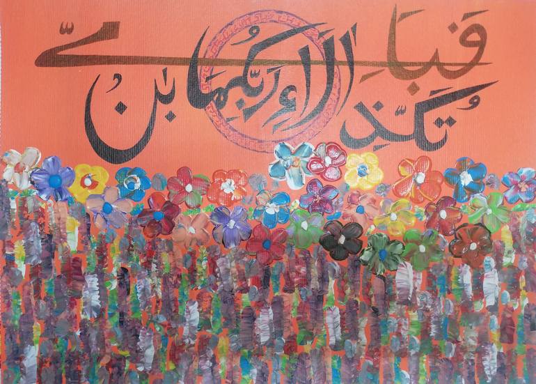 Fabi-ayyi ala-i rabbikuma tukazziban Surah Rahman: 47 Abstract calligraphy Acrylic Abstract calligraphy painting
