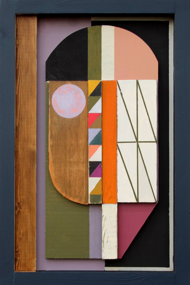 This work is a hybrid of painting and relief sculpture, formed from offcuts of wood, some geometric and some organic in shape, which have been arranged and painted. The work is created intuitively through a process of layering, reconfiguration, and re-painting until a kind of resolution is achieved....