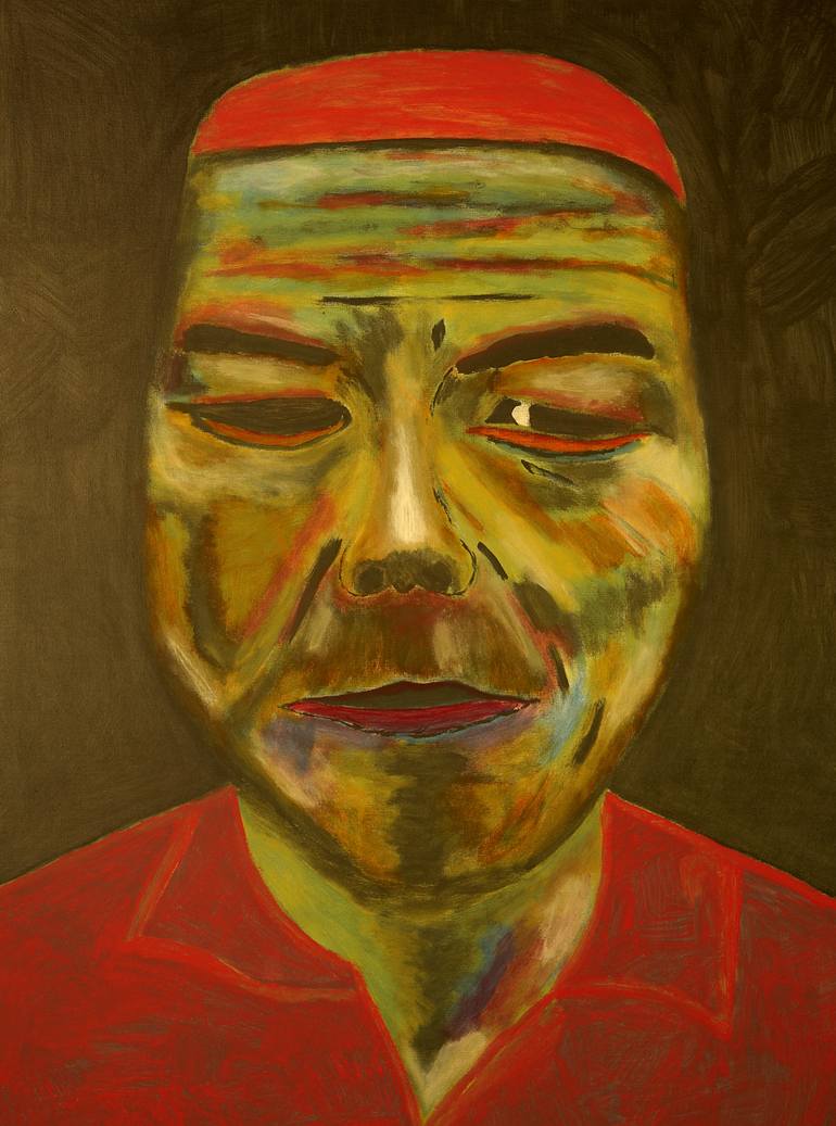 Face of man wearing red top and red bandana Painting