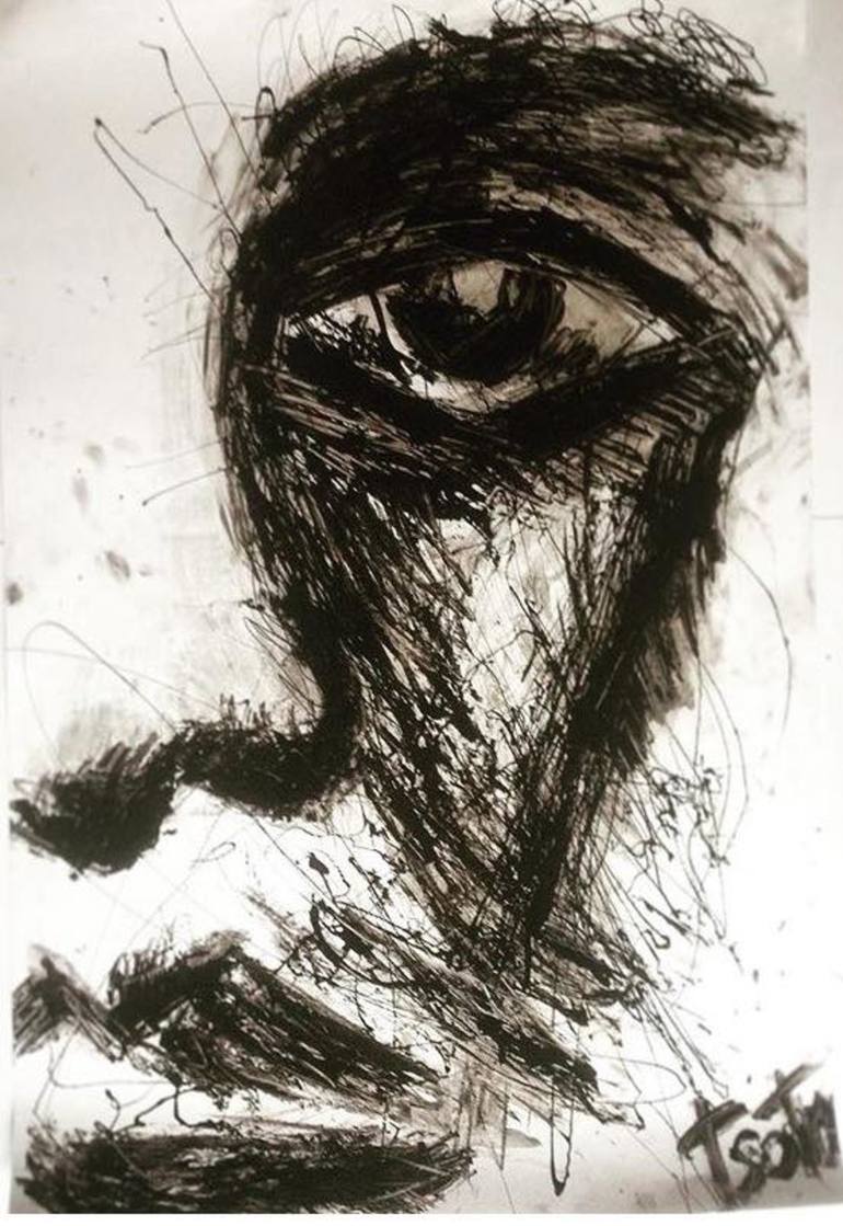 Acrylic painting on paper,a face art,black colour,face art,abstract painting.