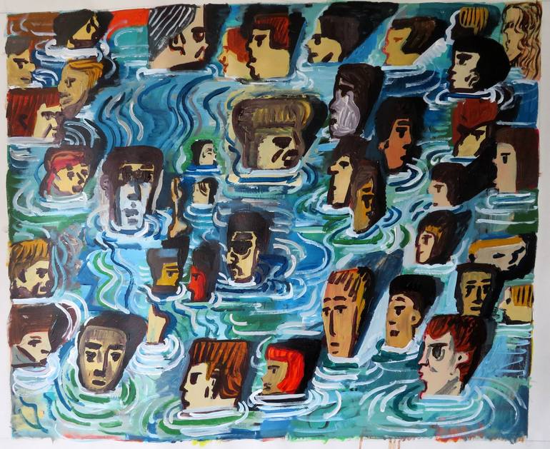 I like painting faces and the ease which I can costruct a composition simply using a similar image that is repeatable yet diffrent every time.