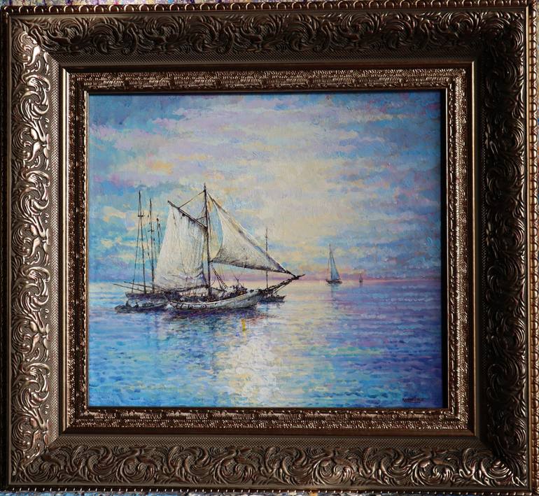 In this painting, I've melded acrylic and oil to capture the ephemeral beauty of a seascape bathed in the soft glow of twilight. The gentle undulations of the sea and the serene sailboats suggest a moment of quiet tranquility. Impressionist touches bring the water and sky to life, offering a sense o...