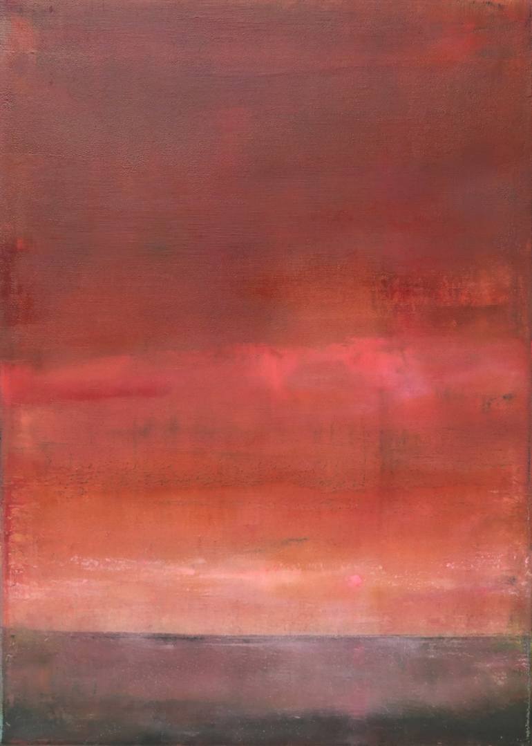 In this painting I have combined elements of abstraction and colour field painting to create an imagined autumnal sunset. The many layers of transparent and semi-transparent paint refract light to imbue the piece with the warm glow of a beautiful autumn day coming to a close with a glorious setting ...